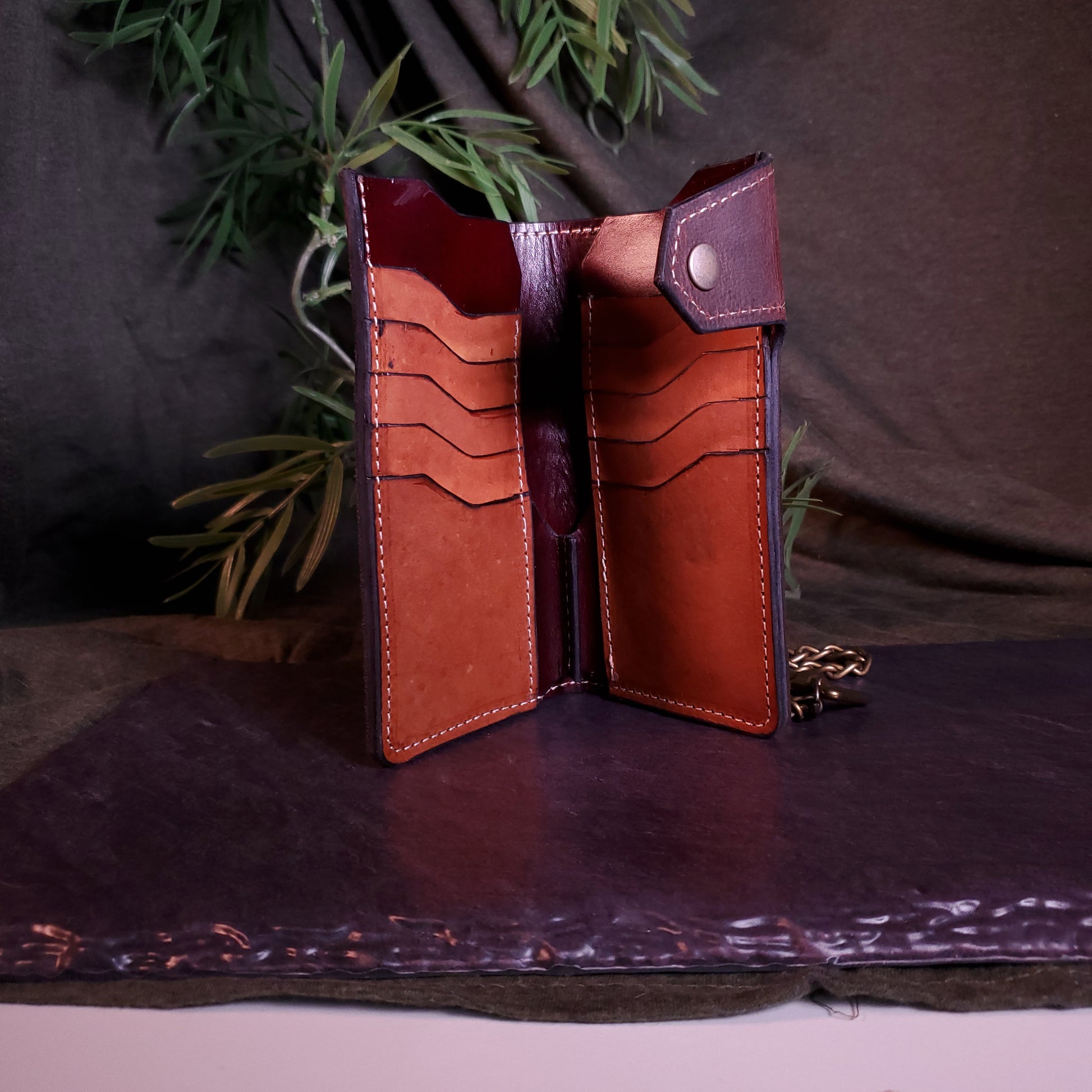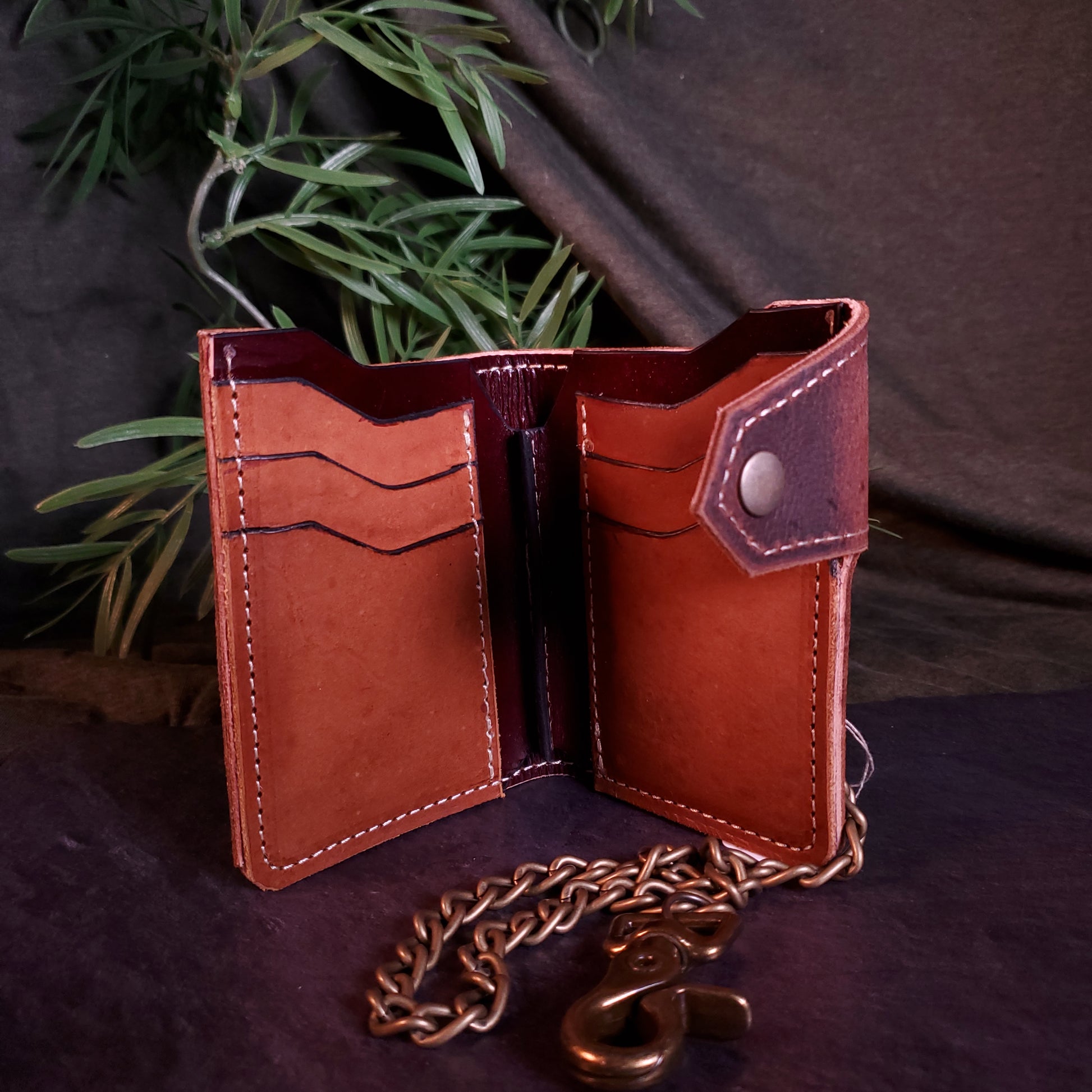 This is our newly designed biker wallet with chain we have two different sizes made for people who prefer either a shorter back pocket wallet or those of you who prefer the classic long wallet style.